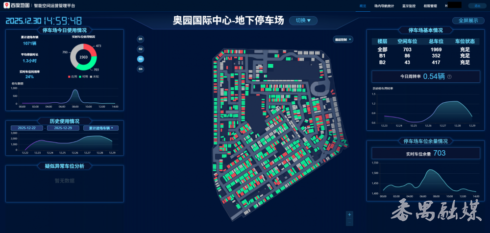 技术突破只是第一步,让数据流动起来服务民生才是关键。项目不仅建设了高精度定位硬件,更同步开发了集导航、停车管理、用户服务于一体的软件平台。